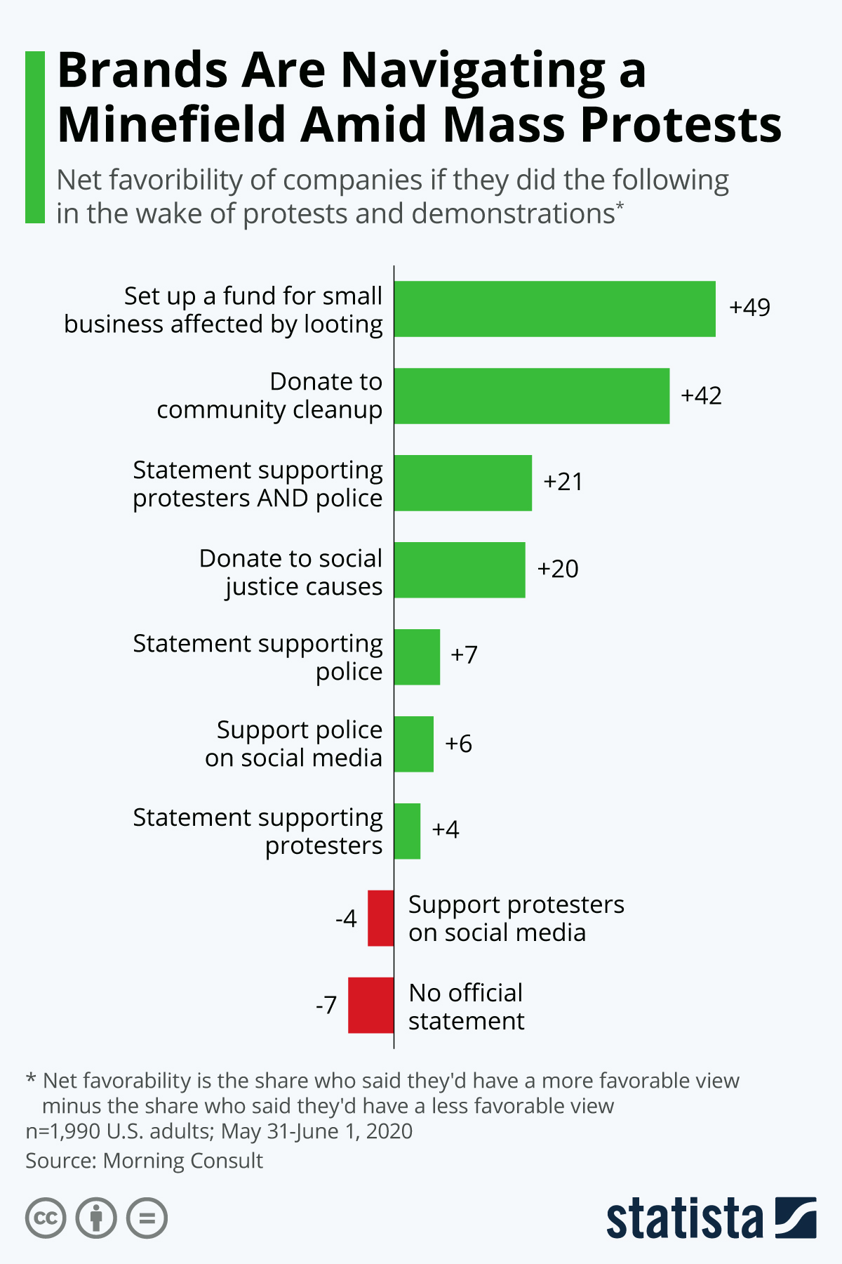 Regardless of the decision, any statement on the protests and the underlying issues of race, inequality, and police violence will alienate a significant number of people. However, silence may offer the worst option. Because people value brands not afraid to take a stand. That represents one key takeaway from a Morning Consult poll. With the other that action speaks louder than words.